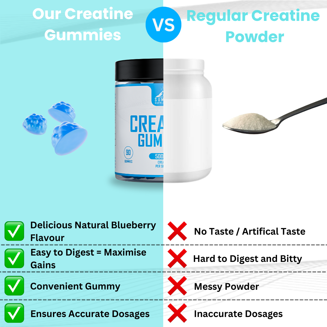 All you need to fuel your gains, is 3 of our blueberry flavoured creatine gummies. This will supply you with 5000mg of creatine monohydrate per day.